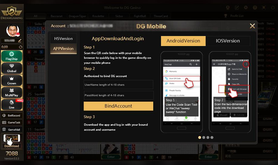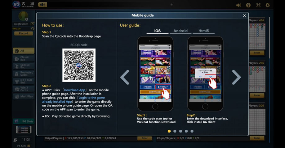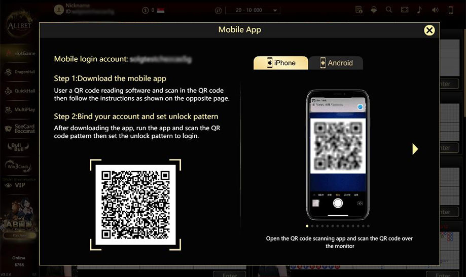 Login the Game Hall & Download via QR Code